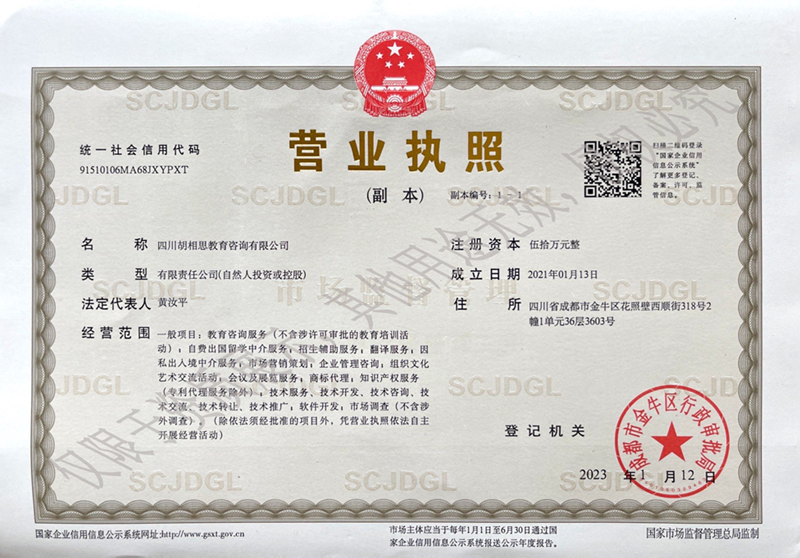 一般项目:教育咨询服务(不含涉许可审批的教育培训活动);自费出国留学中介服务;招生辅助服务;翻译服务;因私出入境中介服务;企业管理咨询;组织文化艺术交流活动;市场营销策划;会议及展览服务;商标代理;知识产权服务(专利代理服务除外);技术服务、技术开发、技术咨询、技术交流、技术转让、技术推广;软件开发;市场调查(不含涉外调查);中小学生校外托管服务;图书管理服务;文具用品批发;文具用品零售;教学用模型及教具销售;租赁服务(不含许可类租赁服务);互联网销售(除销售需要许可的商品);信息咨询服务(不含许可类信息咨询服务);图书出租。(除依法须经批准的项目外,凭营业执照依法自主开展经营活动)许可项目:网络文化经营;出版物批发;出版物零售;出版物互联网销售。(依法须经批准的项目,经相关部门批准后方可开展经营活动,具体经营项目以相关部门批准文件或许可证件为准)